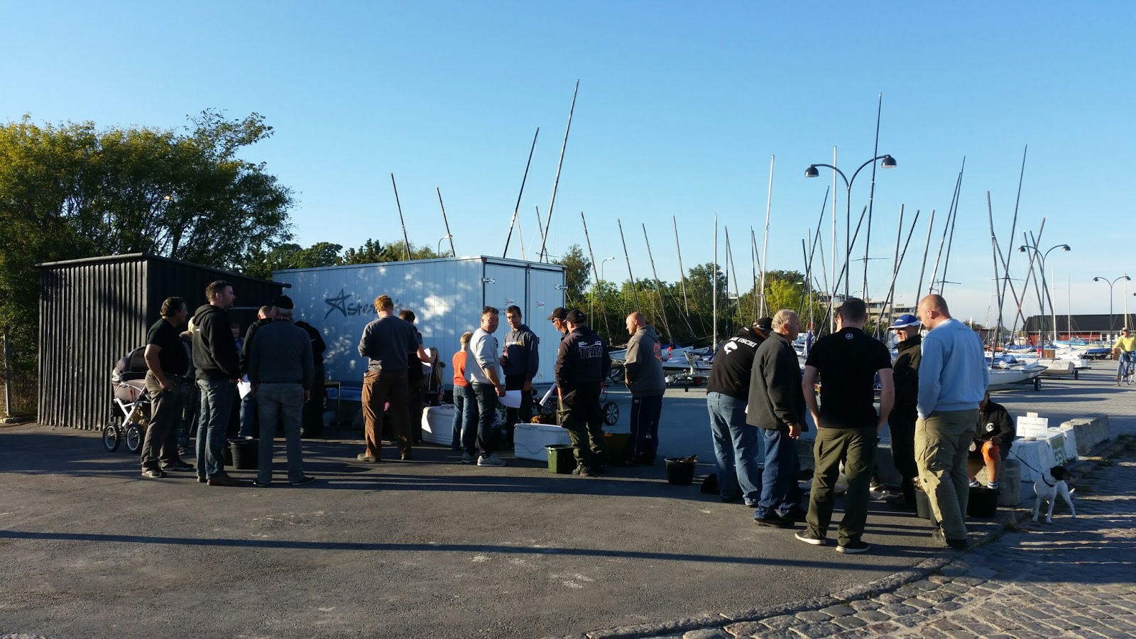 Så er der kø til indvejning, der var rigtig mange deltagere, så det tog sin tid af få vejet alle fisk ind.